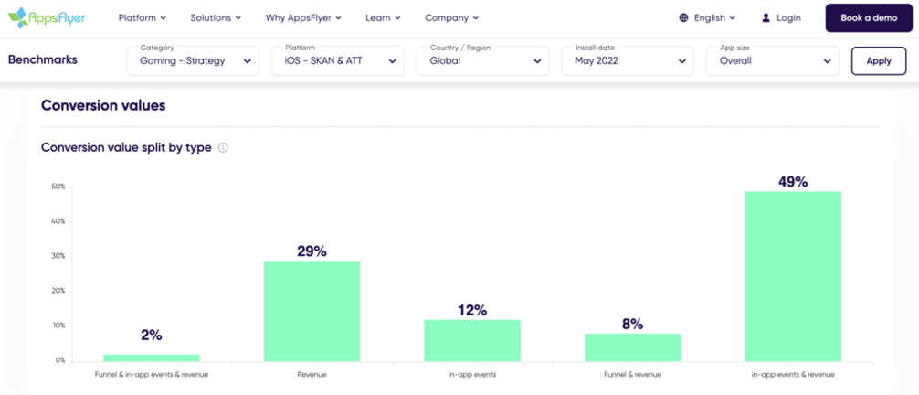 As illustrated by screenshots across different genres, the most prevalent conversion schema combines in-app events with revenue brackets. But, remember, don't blindly adopt this. Test it on your end to ensure it fits your game dynamics.